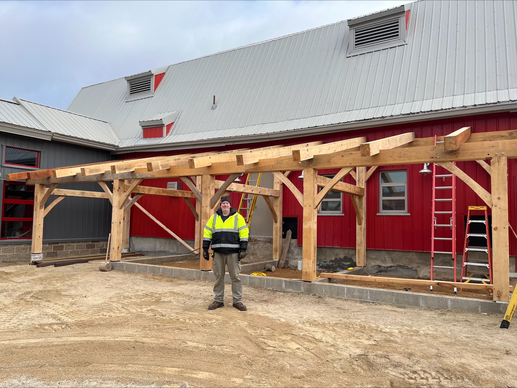 2024 was the first official year of Build With Purpose, and one timber frame receipient was Gale Woods Farm, a working educational farm in Minnetrista, MN. Tim Reese, Farm Supervisor at Gale Woods Farm, knows a thing or two about North House timber frames—the organization raised its first student-built timber frame May 2022, and Reese participated in the class that cut the timbers.