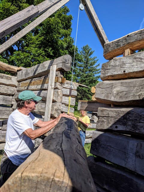 I first met Nels through a summer internship program at the Folklore Village in Dodgeville, WI. Over many summers since, we worked side by side to reconstruct an 1840s Norwegian immigrant’s log home using traditional hand tools and techniques. Nels guided me through the process of building on a large scale, he helped me trust in the physics of the work, the bite of a sharp edge, and in my own capability. Every day felt like a performance of reverence for the materials, for the ingenuity of the craftspeople who came before us, and for the rolling oak savannah. In 2018, I first helped to cut and fit horizontal oak logs into the dovetail construction. Our work together culminated in a Wisconsin Folk Arts grant to build ten double-hung windows completely by hand. This spring, I referenced an original door to build two new doors to close in the space.