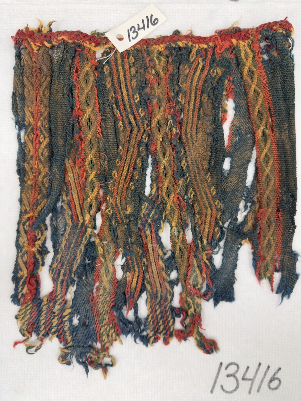 George Washington wore a sprang sash with intricate lace designs. The Vikings created sprang bags with wooden handles. Indigenous peoples in North and South America made belts, sashes, baby slings, bags, tassels, shirts, and more with this technique. Sprang hairnets (including the one below, currently housed at the Kelsey Museum in Ann Arbor, MI) were common in Roman-occupied (Coptic) Egypt in the 4th-7th centuries. The list goes on and on. Sprang was used in many places around the world to create stretchy cloth.