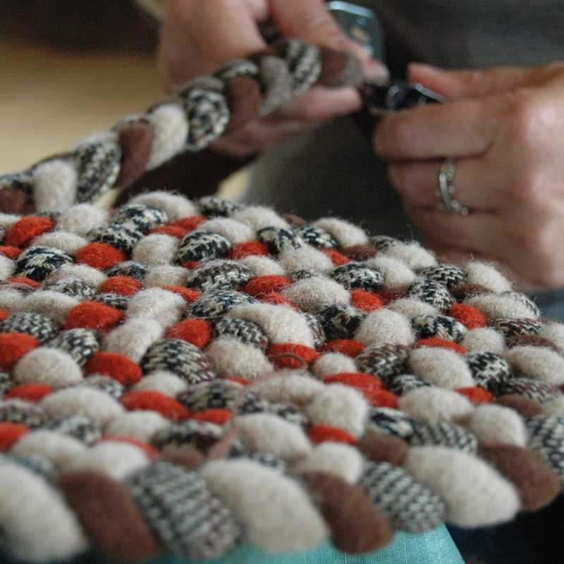 Hand-Twisted Cattail-Rush Footstool Weaving