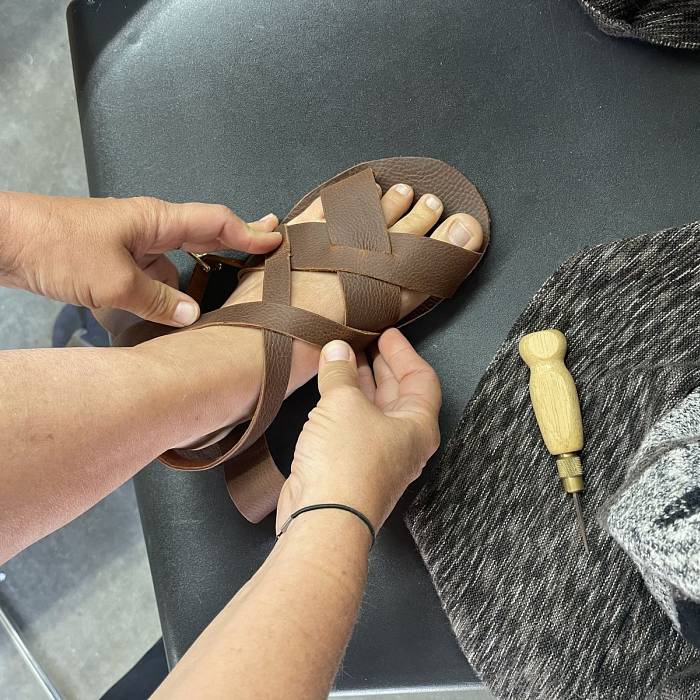 - Feel free to bring a pair of sandals that you already love or that you know fit well; this can help us recreate a fit that you know works well for you, but it’s not necessary.