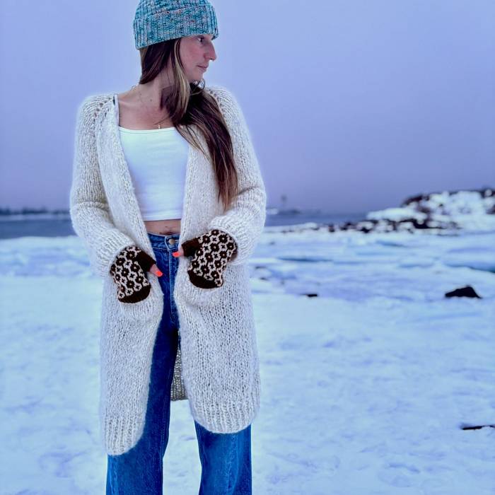 In this class, students will knit Sugar Coat, a long, top-down raglan cardigan designed for comfort, movement, and everyday wear. Worked in DK-weight yarn held double, the fabric knits up at a bulky gauge, making this a satisfying, fast-moving project well suited to winter knitting.