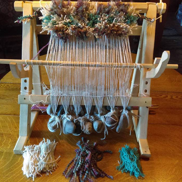 - tote bag to hold warp weights (rocks) and yarns/fleece to take home