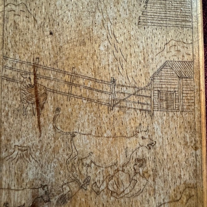 Learn to make a Scandinavian-style hardwood cutting board and “tattoo” it through the traditional craft of kolrosing. Inspired by an antique kolrosed cutting board Liesl found in Norway, your board will have one side for cutting and the other side decorated so that you can hang it proudly in your kitchen! Kolrosing uses a very small knife to cut lines into wood that have pigment (like ground cinnamon) and oil rubbed into them for a scrimshaw-like effect. Instructor Maeve Gathje will lead the class in designing and cutting shapes into the board itself. This can be a simple handle, or the shape of an animal. Maeve will cover design elements to consider when creating a custom cutting board. Then kolrosing artist Liesl Chatman will cover kolrosing knife techniques used in cutting letters, borders, patterns, and illustration.