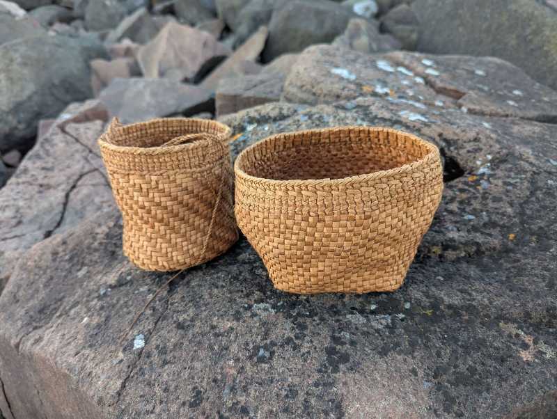 Root Stitched Birch Bark Containers with Wood Bottoms
