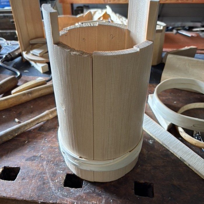 Cooperage is the craft associated with creating staved containers, most familiar to folks as buckets, barrels, or even butter churns. We will focus on creating smaller containers in the white cooperage style, as it is more approachable and less technically complex than making water-tight barrels. Students can pursue several different options for the project in class, but each will involve learning about shaping the staves, fitting the bottoms, and final assembly.