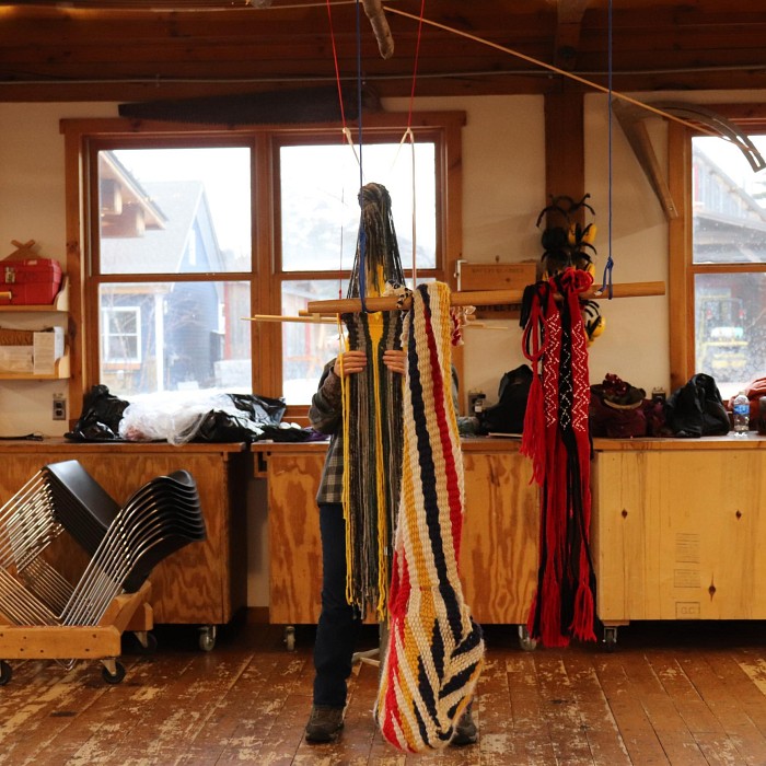 Fingerweaving is one of many traditional methods utilizing ordinary materials to make beautiful objects for use in daily life. Starting with medium weight wool yarn, we’ll set up our project using wooden sticks. A hatband and bag strap are easy to complete during the class time, but those who wish to make a wider and longer belt/sash or scarf will need to do some homework beyond class time. In class, we will cover the full color, lightning, and diamond patterns. Optional evening sessions will include more advanced pattern techniques. A variety of samples of woven work will be available for discussion. Students are encouraged to bring their own yarns, but a small selection of yarn will be available for purchase ($50 and up). Youth ages 12+ may register if accompanied by an adult. Adult/child pairs will complete two projects and should provide their own yarns. A 25% tuition discount applies to the youth registrant when registering with a full paying adult; call to register. Students ages 14+ can choose to register independently.