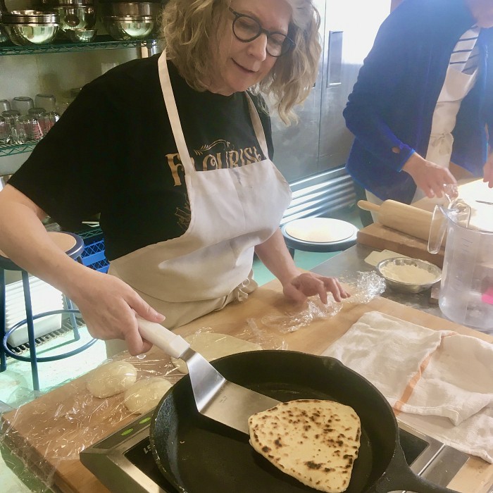 Flatbreads are humans’ first bread and are still the world’s most popular type of bread--discover why! Flatbreads are quick to make, easy to bake on griddles, piles of hot coals, or in a hot oven, and they can enrich the kitchen with grains not typically used in loaf breads. In this class, which combines baking basics and techniques with lessons in history and culture, we will take a journey to far corners of the world to see how other people in other places create their breads. We will make unleavened breads and crackers, leavened wheat-based breads, and filled flatbreads. We will bake breads using various methods, including on the stovetop and in the large outdoor wood-fired oven, and we will prepare complementary side dishes to accompany them.