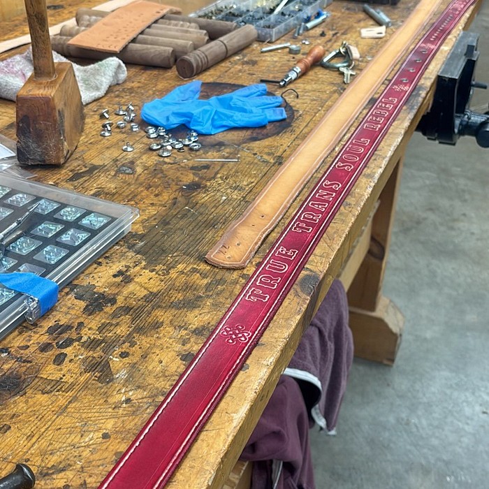 Students should expect to finish two belts in this class, and an assortment of small projects like a keychain or luggage tag, while learning to work with the material.