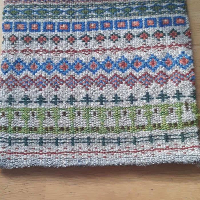 This class teaches students how to create folk-art-style designs using 4 shafts on the floor loom. After a short warping refresher on North House's looms, we will do some sample weaving, then learn to create original designs and weave a small project which can be used as a wall hanging, table topper, or purse. Ready-made warps will be available to purchase for $25, or students may request to have a draft sent and make their own warps, ready to put on the loom when class begins. The $11 materials fee taken at registration covers the weft.