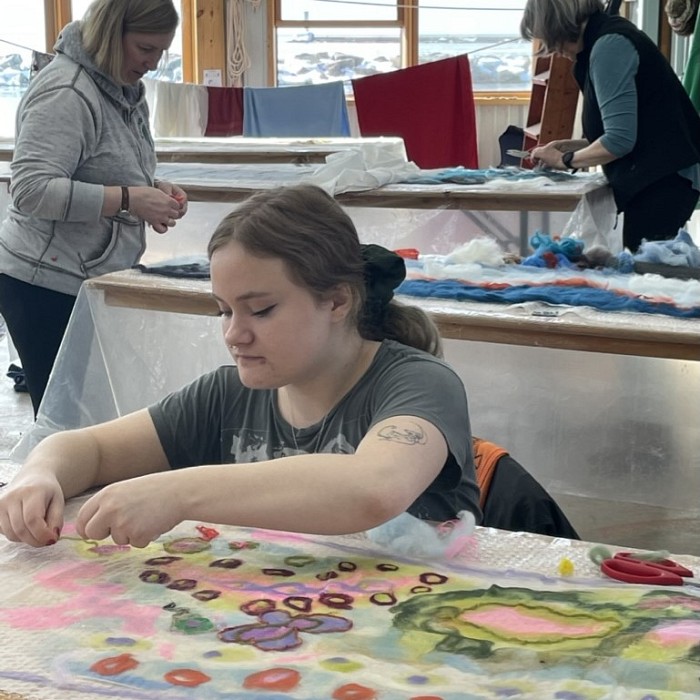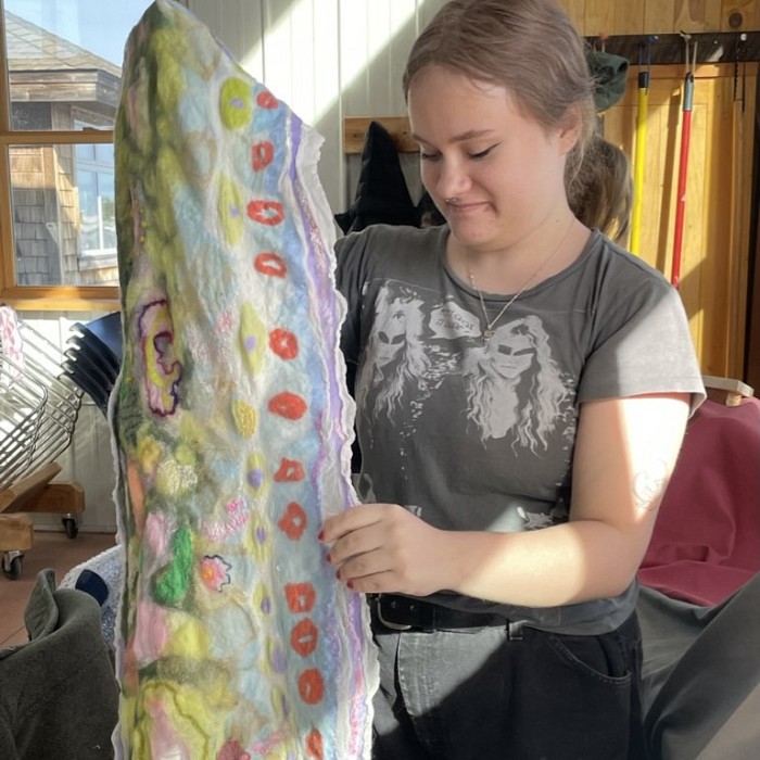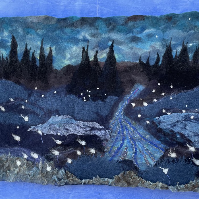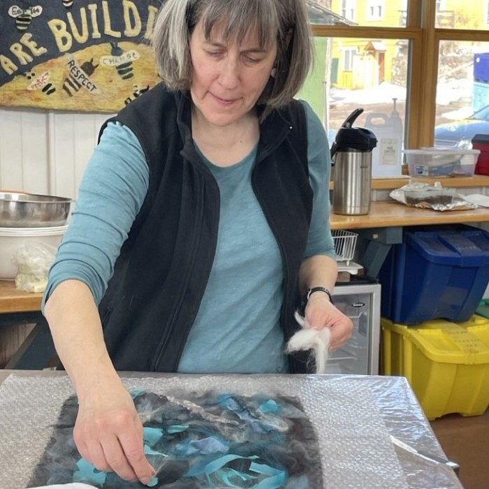 More and more of what we buy is made of unsustainable and forever plastics. When we make things with wool, we are creating long lasting, handmade, beautiful, and completely compostable items. Together we will brainstorm the many things in our homes that we can replace with the ancient craft of felted wool. Using wool as the medium, there is endless flexibility in designs, allowing one to play like a painter. Using colorful wool, (some from local sources) and techniques of needlefelting, prefelts, and blending colors, students will design and create useful and beautiful household items. No art skill is needed as the natural wool material beauty will guide us to success. Make place mats, table runners, seat cozies, pot holders, small rugs, wall hangings, or something else one may dream of.