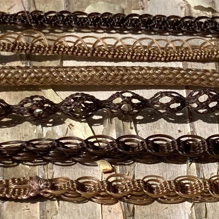 Using collected artifacts and source material from books published in the 1800’s, students in this Friday evening to Monday afternoon class will learn 4-5 braid designs including hollow and flat braids. These, in addition to the 4 patterns learned in the prerequisite bracelet class, will provide an array of braids to include in a hairwork sampler. This way of displaying hairwork can serve as a record of learned skills and as inspiration for future projects.