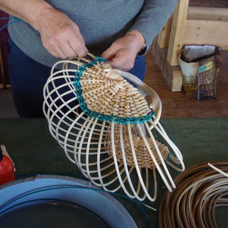 Cathryn has been lovingly restoring antique wicker furniture and rescuing broken chair seats for over 40 years. She developed a passion for basketmaking with antlers and natural materials in 1990 while living in southern Minnesota. Using basketry techniques, Cathryn has created one-of-a-kind woven antler basket sculptures for her clients that reflect the rustic elegance of nature, giving them an "up North" spin. She delights in sharing her years of accumulated knowledge and resources to perpetuate the nearly lost art of chair caning, and loves watching the creative juices flow with students in her antler basket classes. Now a 15-year resident of northeastern Minnesota, she is a studio artist who weaves and hand-gathers materials from her rural property. Cathryn teaches nation-wide and her works have appeared on public television, in books, periodicals, and national galleries.