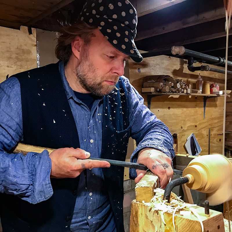 Derek Brabender found his passion for green woodworking after carving his first spoon in 2014. What began as a fascination with spoon carving quickly grew into a broader exploration of crafting household treen. After taking his first turning course with Jarrod Dahl in 2017, pole lathe turning became the primary focus of Derek’s green woodworking practice. In 2024, Derek received an Artist Fellowship from the American Scandinavian Foundation to study advanced turning techniques and pole lathe pedagogy with Jarrod, explore the historical context of the pole lathe in Nordic countries, and build a set of lathes to increase public awareness and engagement with this craft and its importance to Scandinavian folk art.