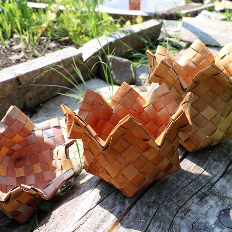 Julie has been making baskets and ornaments since 1981. She utilizes materials gathered from the woods around her home in Hovland. Her favorite materials are birch bark and red-osier dogwood. In 2001, Julie's artistic talents were featured on the program "Venture North" on public television. At times, Julie integrates other natural materials into her work including pinecones, driftwood, and spruce roots.