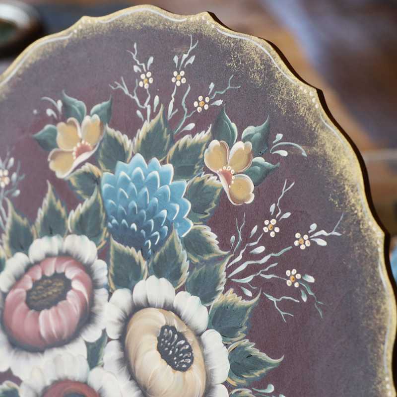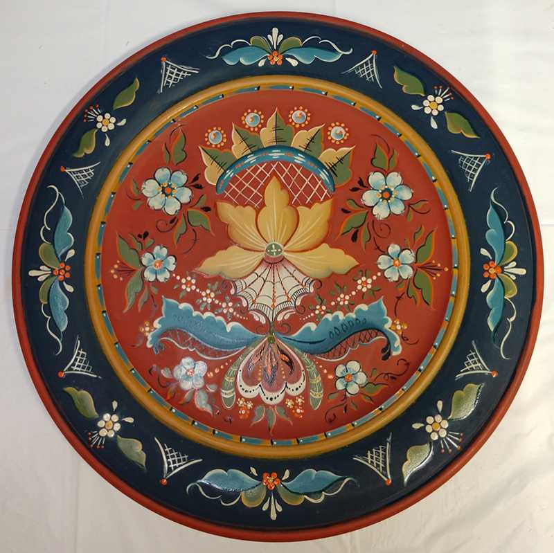 Kim started rosemaling 12 years ago by taking a class at North House Folk School with instructor Mary Schliep. She fell in love with it and has been painting ever since. Kim has studied with several Vesterheim Gold Medal-winning rosemaling instructors. She also studied with master artists in Norway and Sweden. Kim’s goal is to bring together a blend of traditional Scandinavian folk art with modern techniques and point of view.