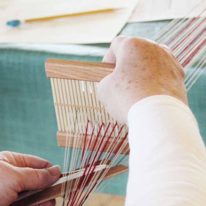 and describe the components of nålbinding. His research is documented in Ulrike Claßen-Büttner’s study “Nadelbunden,” and elsewhere. Larry is also interested in traditional, easy-to-complete textile projects that utilize tools and equipment that are portable and easy to obtain or construct. His classes at North House reflect his continuing interest in traditional textile crafts.