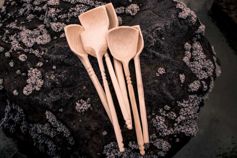 Now, his primary work is in carving spoons, in part because this craft allows him to be outside. His spoons are made by the forested, high banks of the river Ljusnan, a place that has enriched both him and his spoon carving: “A strange feeling of rewilding can come over me. And a feeling that me and the spoons are connected. A sense of integrality. But also a feeling that the spoons are coming from a totally other place – from the depths and ices there by the Ljusnan, from the storms and lifting fogs... while I am just watching.”