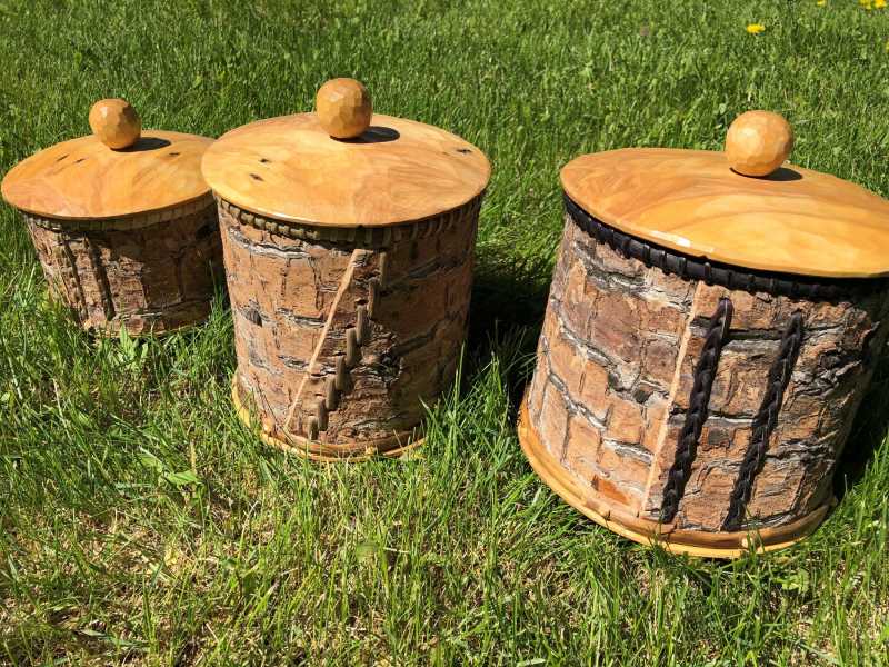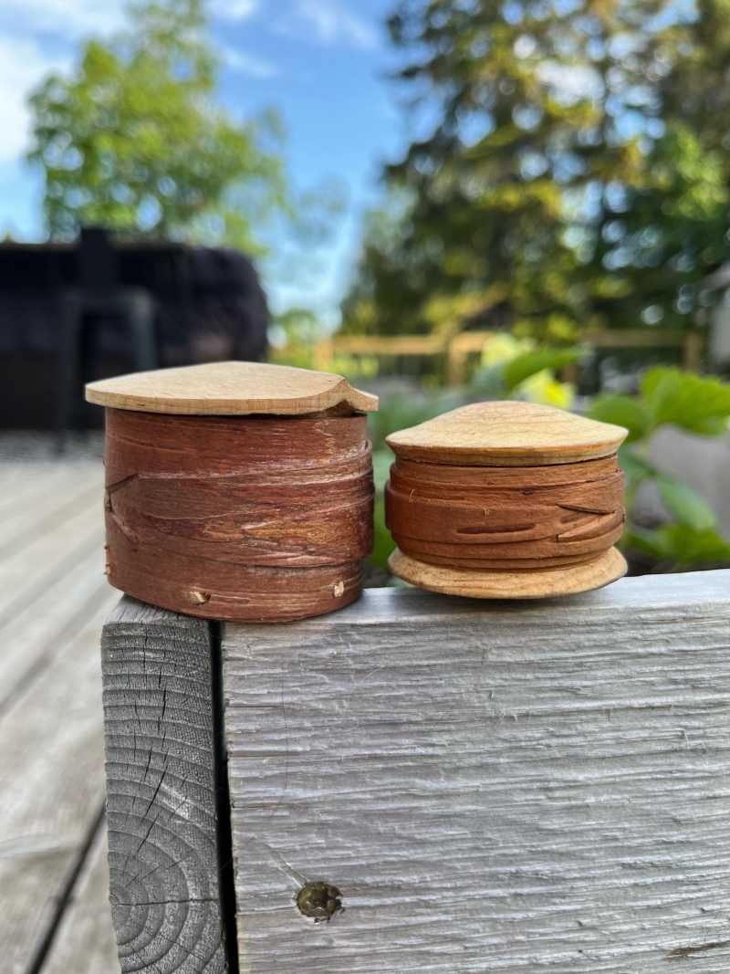 Root Stitched Birch Bark Containers with Wood Bottoms