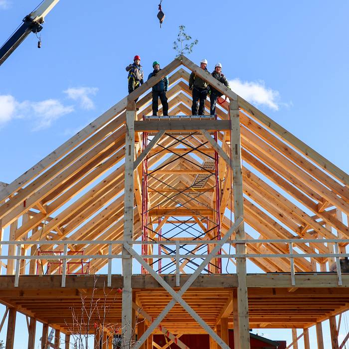 It's been a monumental few weeks at North House as the Welcome Center timber raising has completed! Read on to see the Welcome Center take shape, from raising the first timbers to putting the final piece in place.